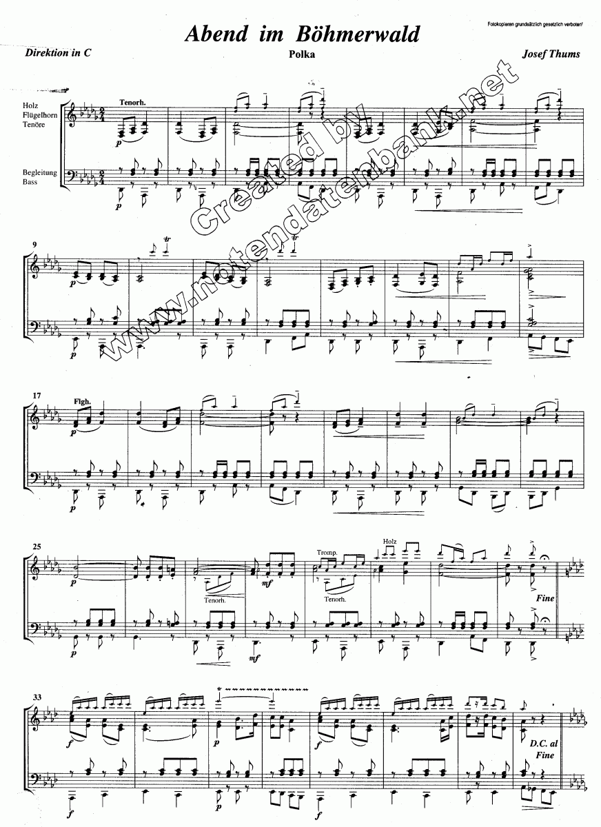 Abend im Böhmerwald (Vecerni Sumavou) - cliquer ici Abend im Böhmerwald (Vecerni Sumavou) (orchestre d'harmonie), Score condensé et parties