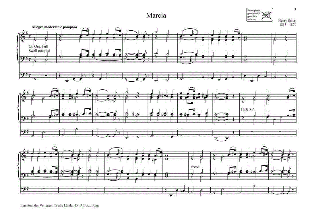 'Die Orgelwerke von Smart sind kleine Juwelen. Das Spektrum reicht von den klangschönen und stilistisch völlig unterschiedlichen Voluntaries über eine Variationenreihe bis hin zum riesigen ‚Grand Solemn March', der der typisch britischen Klangtradition folgt. Mit Ausnahme des letzten Stückes sind die Kompositionen auch für Laien gut zu bewältigen; sie eignen sich für den Gottesdienst wie auch das Konzert.' [Forum Kirchenmusik 3/2004]
