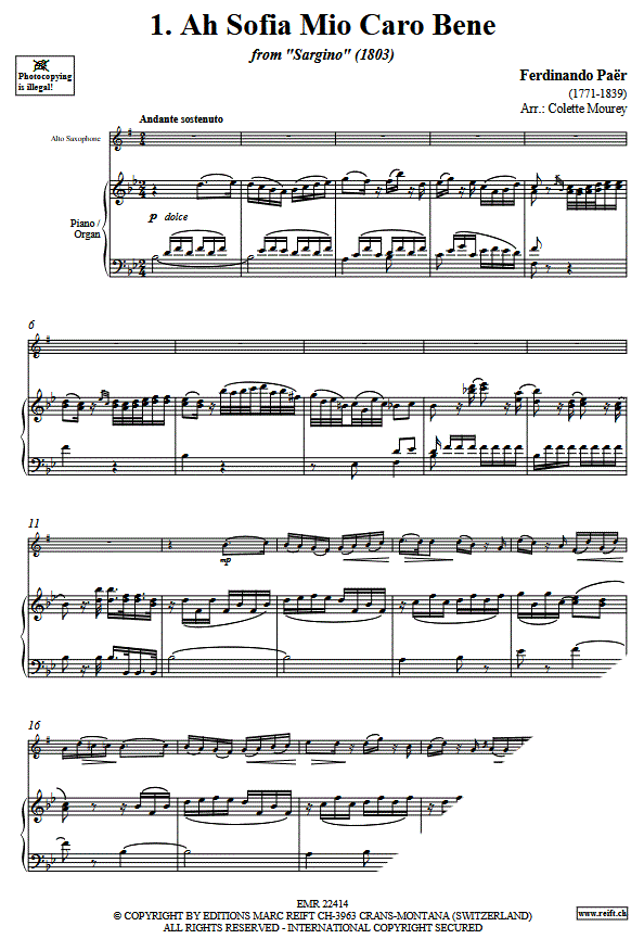Informations complémentaires/contenu 1. Ah Sofia Mio Caro Bene from ''Sargino'' (Paër)
