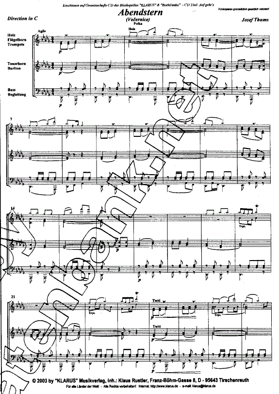 Abendstern (Vecernice) - cliquer ici Abendstern (Vecernice) (orchestre d'harmonie), Score condensé et parties