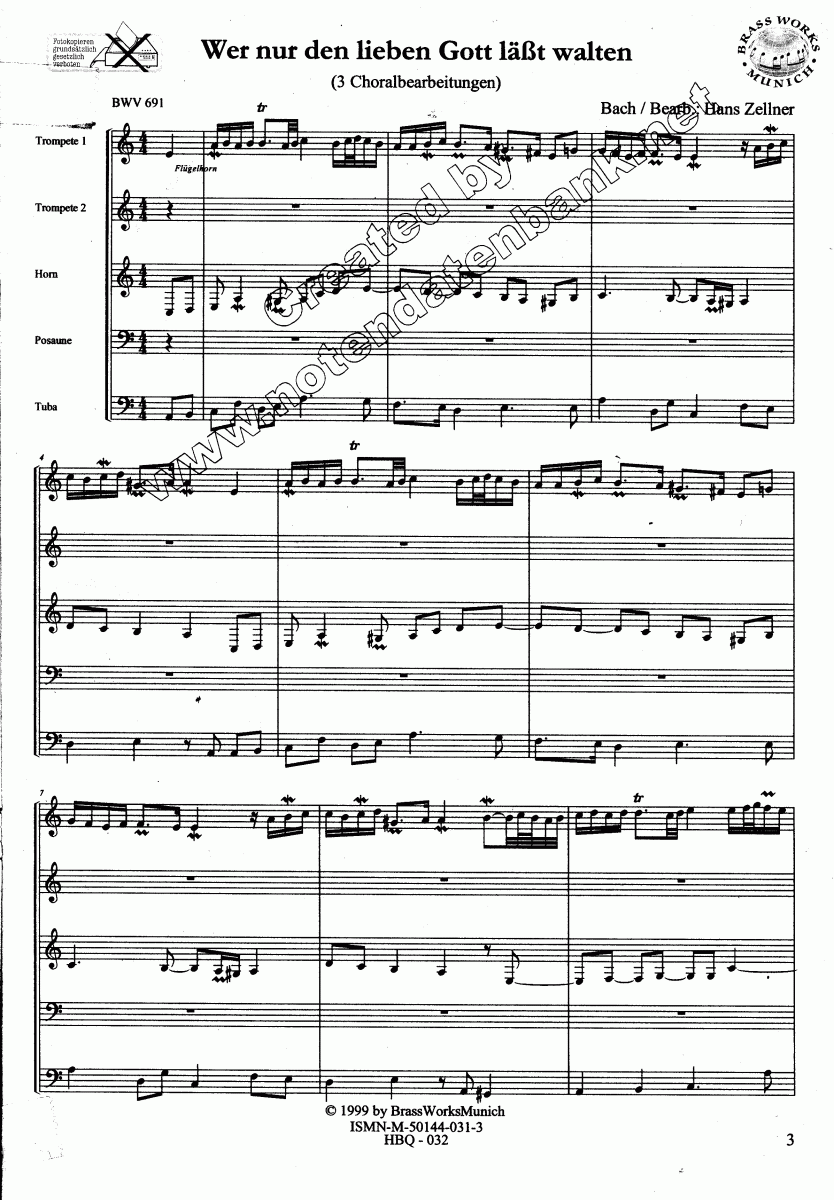 Wer nur den lieben Gott lässt walten (3 Choralbearbeitungen) - cliquer ici Wer nur den lieben Gott lässt walten (3 Choralbearbeitungen) (2 trompettes en si bémol; cor; trombone; tuba)
