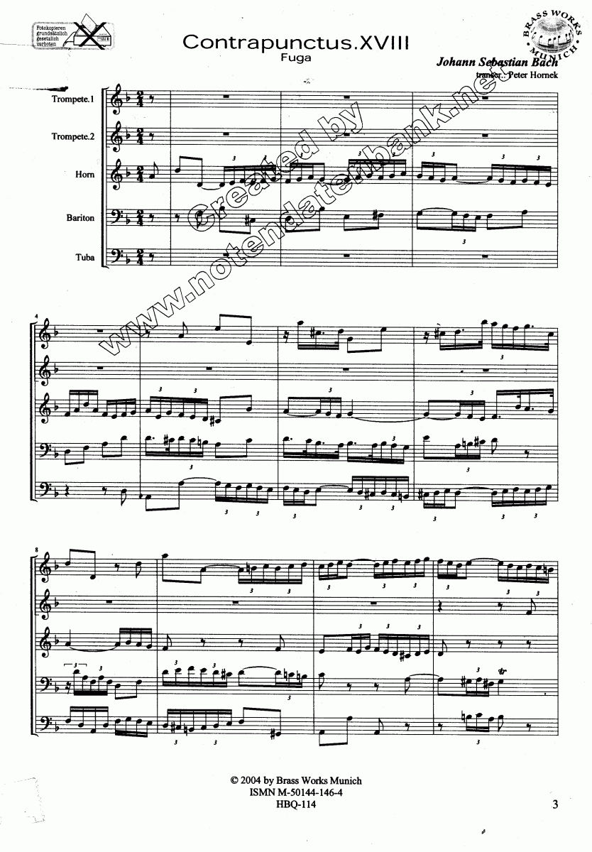 Instrumentation / informations 2Trp (2 trompettes en si bémol); Hrn (cor); Brt (baryton); Tub (tuba)