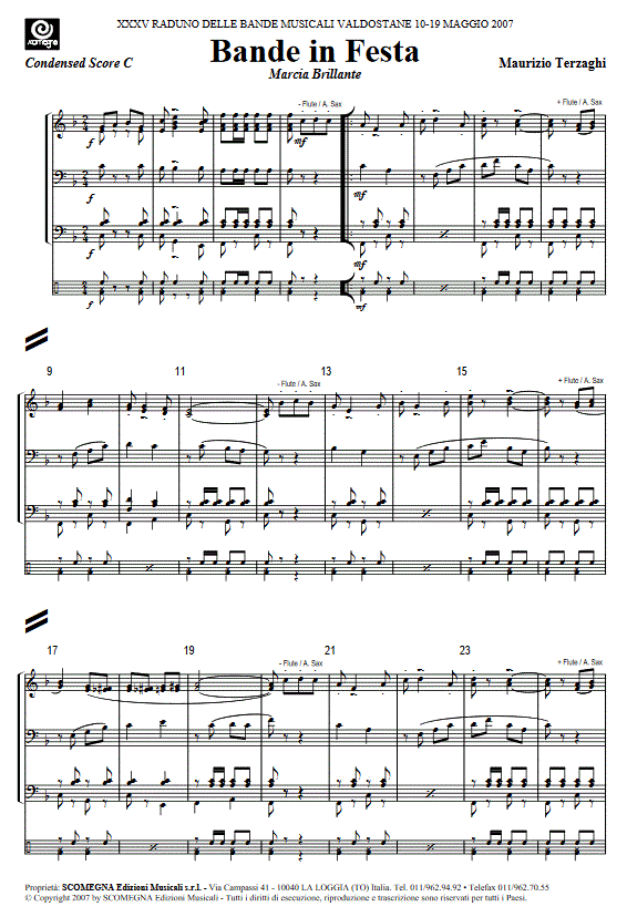 Bande in Festa - cliquer ici Bande in Festa (orchestre d'harmonie), partition