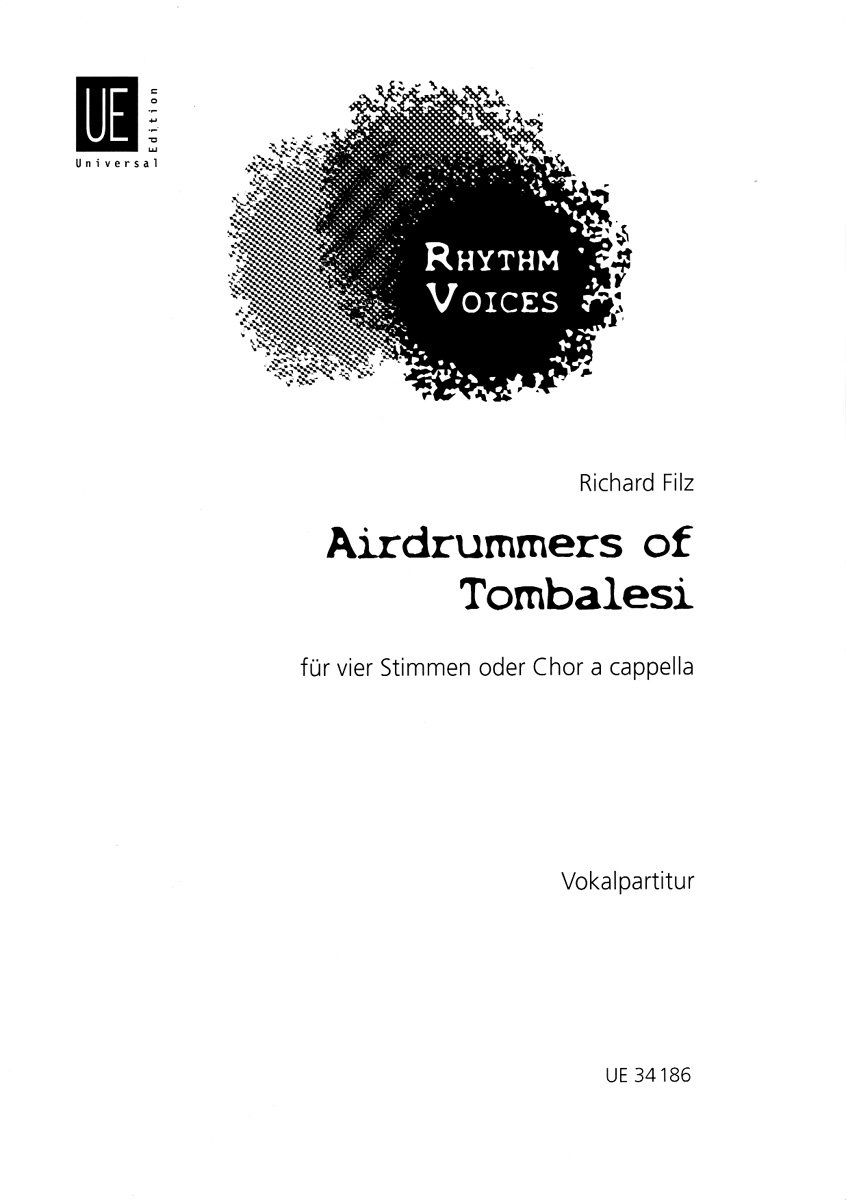 As part of the Rhythm Voices series, German drummer/composer Richard Filz gives us Airdrummers of Tombalesi and Beam Me Up!, quick, lively pieces for choir or four-part voices written in a percussive style. Each voice part imitates the drum with consonant and vowel sounds, resulting in unique and tangible tone color. For intermediate to advanced singers.