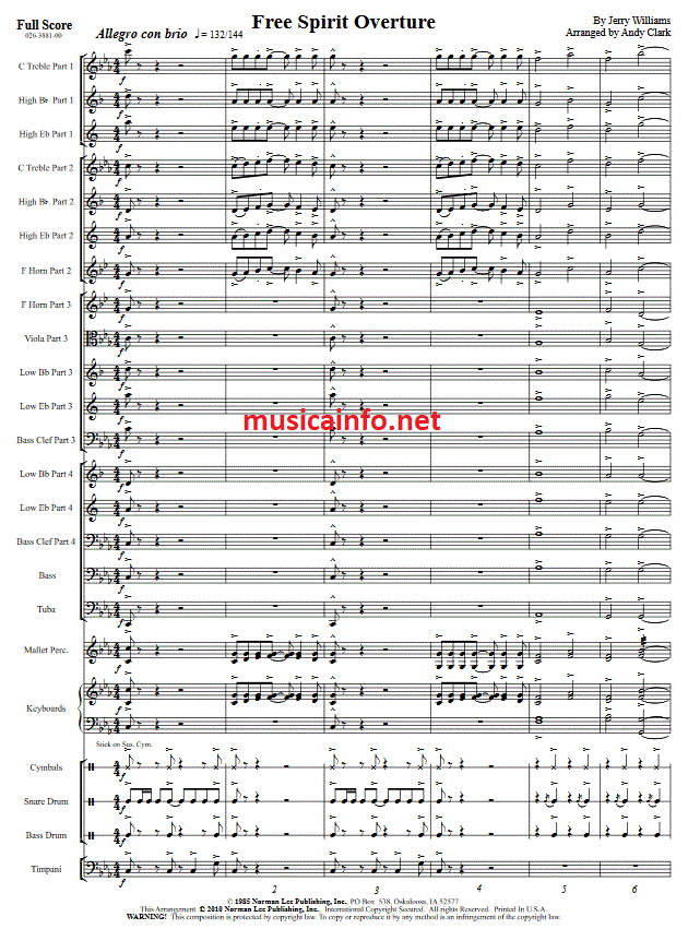 Free Spirit Overture - cliquer ici Free Spirit Overture (orchestre d'harmonie; instrumentation variable), partition et pièces