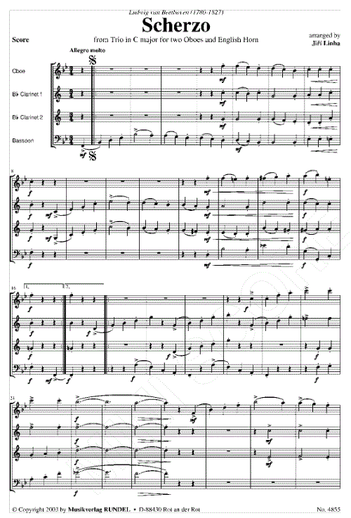 Scherzo - cliquer ici Scherzo (hautbois; 2 clarinettes en si bémol; cor en fa), partition et pièces