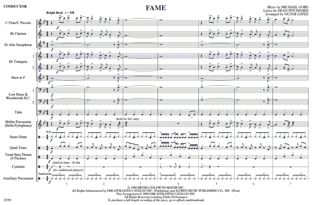 Fame - cliquer ici Fame (orchestre d'harmonie; Musique pour la rue), partition et pièces