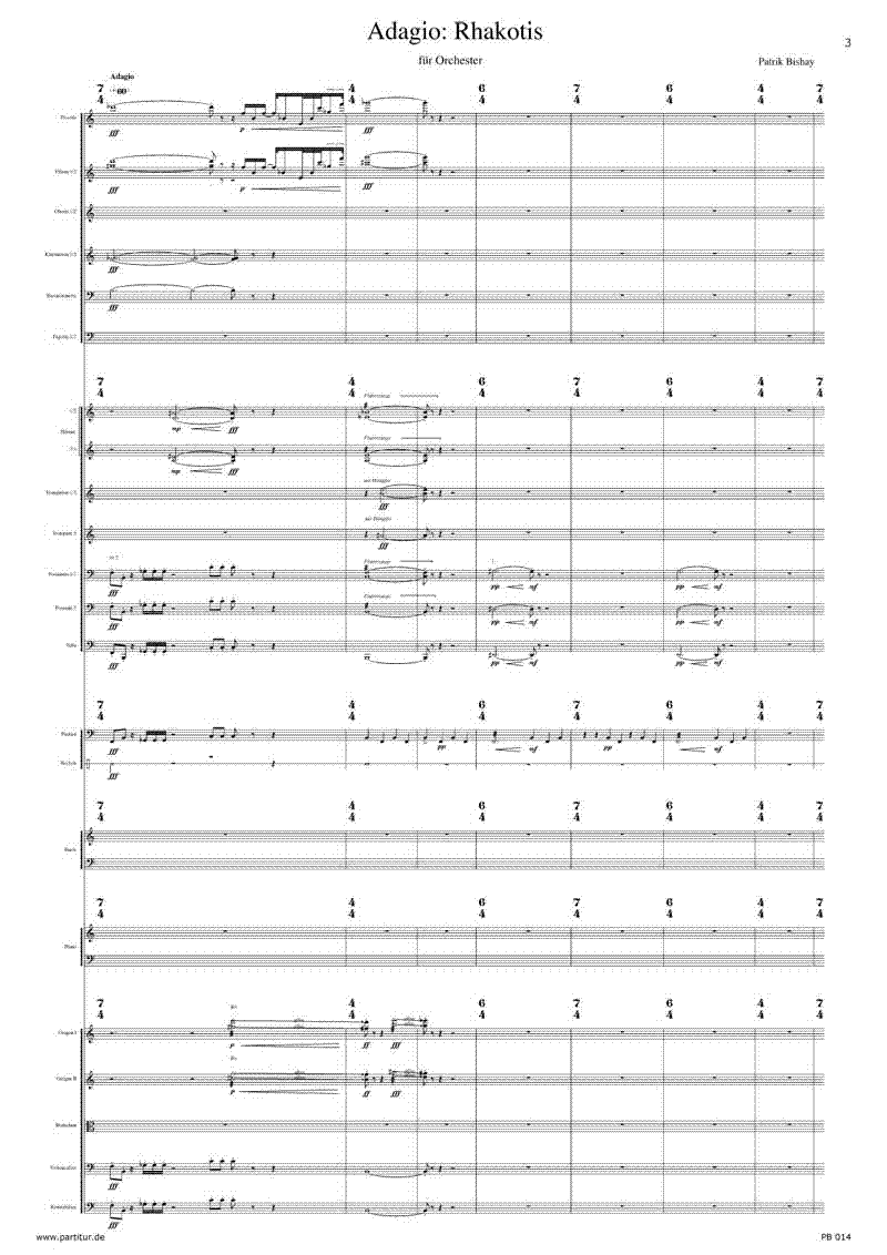 Instrumentation / informations 3,2,3,2,-4,3,3,1; Tmp (Pauken); Perc (instrument de percussion); Hrp (harpe); Pno (piano); Str (instruments à cordes)