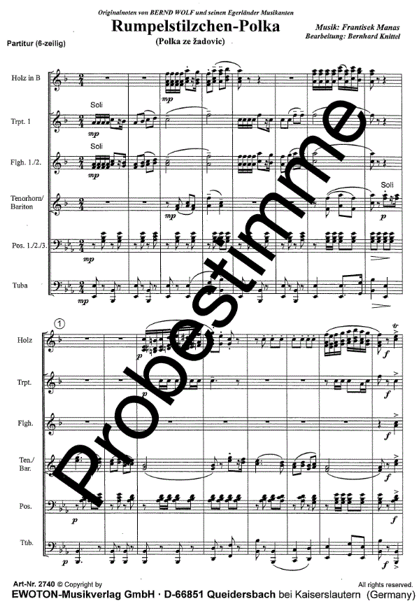 Informations complémentaires/contenu František Manas komponierte die Polka z zadovic (Polka aus Zadovice) durch eine freundschaftliche Verbindung nach Zadovice in Südmähren. Bei der Übernahme des Werkes durch Orchester in Deutschland fiel auf, dass einige Passagen dieser brillanten Polka an den Tanz von Rumpelstilzchen ums Feuer erinnert. Somit erhielt die Polka aus Zadovice ihren Namen "Rumpelstilzchen-Polka".