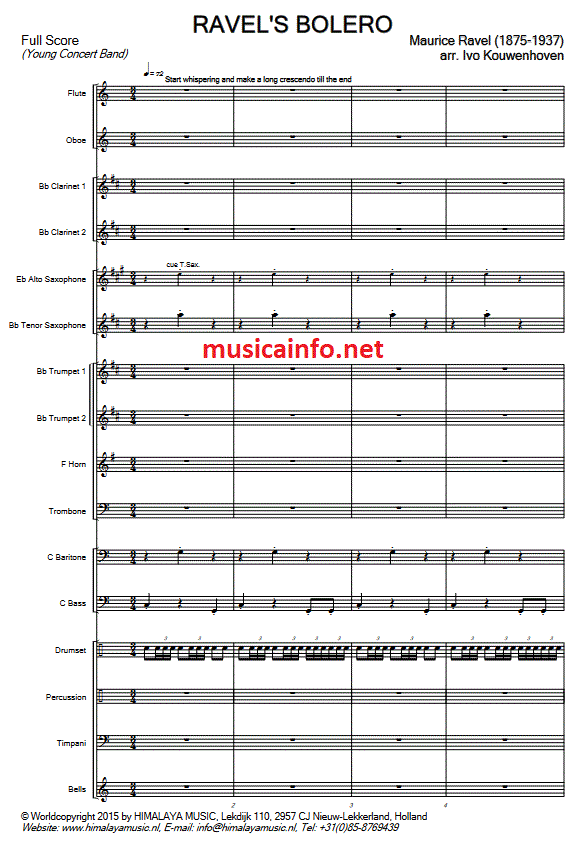 Ravel's Bolero - cliquer ici Ravel's Bolero (orchestre des jeunes; orchestre d'harmonie), partition