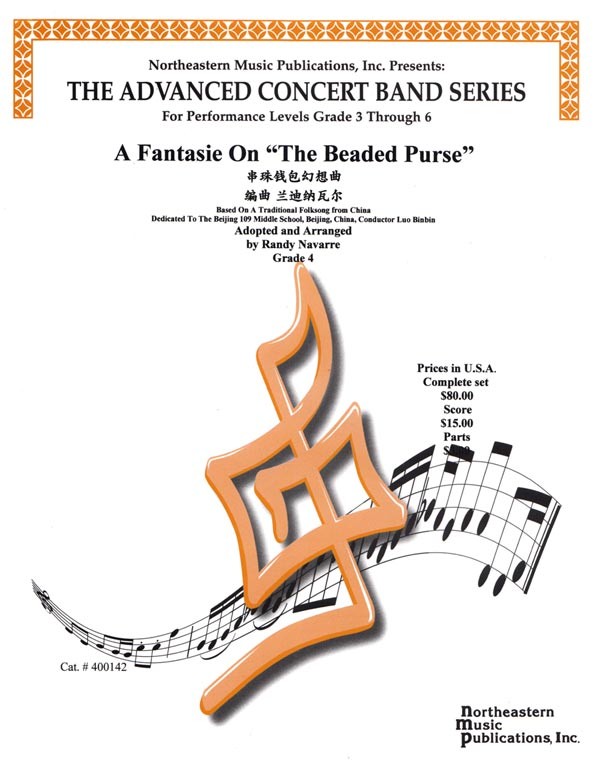 This is an original folksong from China. The Beaded Purse is an art produced in ancient China by daughters and women. It was a highly praised item. The composition weaves melodies in a beautiful fashion with lovely harmonies. The 1st trumpet's highest note is A. The 1st F Horn's highest note is G. That high range does not happen often, nor is it a constant test of endurance.