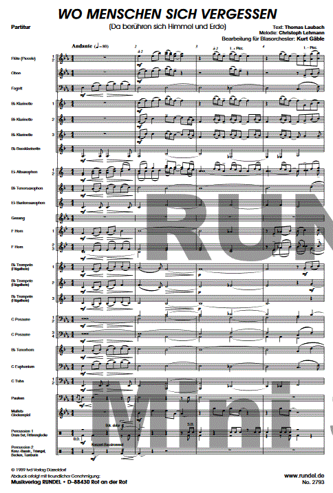 Wo Menschen sich vergessen (Da berühren sich Himmel und Erde) - cliquer ici Wo Menschen sich vergessen (Da berühren sich Himmel und Erde) (orchestre d'harmonie), partition et pièces