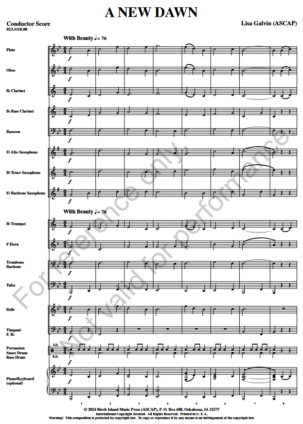 Informations complémentaires/contenu La musique lyrique est importante même pour les plus jeunes musiciens, et « A New Dawn » de Lisa Galvin offre une merveilleuse occasion de développer les compétences d’un jeu fluide et lyrique. En utilisant seulement les six premières notes apprises lors des cours de groupe, vos musiciens débutants auront la possibilité de se concentrer sur la production de son et la beauté du son. Cette nouvelle approche d’une ballade de groupe débutant sera le morceau de contraste parfait pour votre présentation de concert. Une partition habile et de belles mélodies en font un excellent choix.