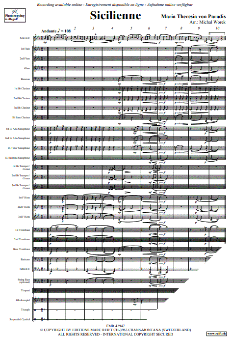 Solo for Piccolo, Flute, Oboe, Clarinet, Bass Clarinet, Bassoon, Soprano Saxophone, Alto Saxophone, Tenor Saxophone, Baritone Saxophone, Trumpet (Cornet), F Horn, Eb Horn, Alto Trombone, Tenor Trombone, Bass Trombone, Euphonium, Tuba, Violin, Viola, Violoncello or Contrabass |