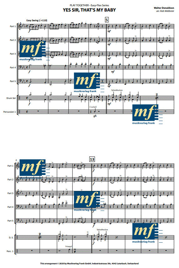 Informations complémentaires/contenu « Yes Sir, That's My Baby » de Walter Donaldson est plus qu'une simple chanson populaire des années 1920 ; c'est un témoignage du changement culturel et de l'innovation musicale de cette époque. L'arrangement de Rob Webbster favorise non seulement l'appréciation de l'original, mais apporte également une bouffée d'air frais sur la scène de la musique pour cuivres. Ce lien entre le passé et le présent montre comment les arrangements contemporains peuvent réinterpréter et préserver l’attrait intemporel des mélodies classiques.
