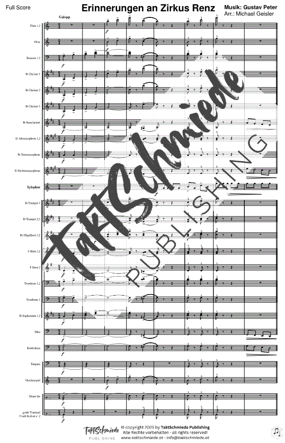 Informations complémentaires/contenu L'adaptation de « Memories of Circus Renz » par Geisler offre à la fois un hommage à l'œuvre originale et une extension innovante. Le vent frais apporté par les éléments swing combine les styles musicaux traditionnels et modernes et rend la pièce attrayante pour les étudiants intermédiaires. De cette manière, Geisler réussit à réinterpréter la nostalgie et le plaisir de la composition originale, tout en élargissant la palette musicale et les possibilités expressives de la musique à vent.