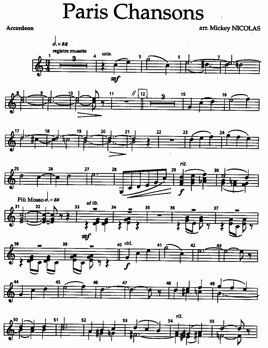 Paris Chansons - cliquer ici Paris Chansons (orchestre d'harmonie; accordéon), partition et pièces