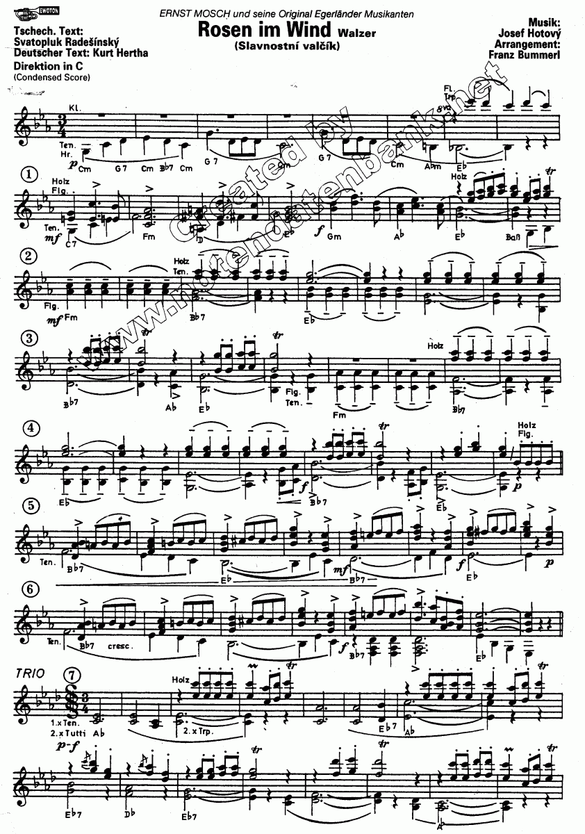 Rosen im Wind (Slavnostni Valcik) - cliquer ici Rosen im Wind (Slavnostni Valcik) (orchestre d'harmonie), Score condensé et parties