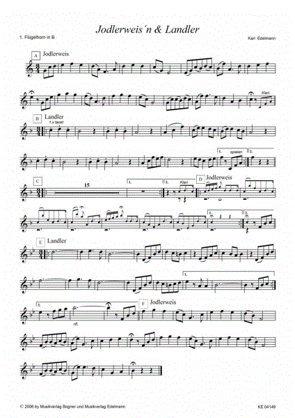 Es beginnt mit einem Jodler für Blechbläserquartett, gefolgt von Klarinetten- und Tenorhornlandlern. Nun erklingt als Zwischenteil ein Klarinettenjodler, darauf ein Trompetenlandler. Und als Höhepunkt zum Schluß nochmal der Anfangsjodler im Tutti gespielt.